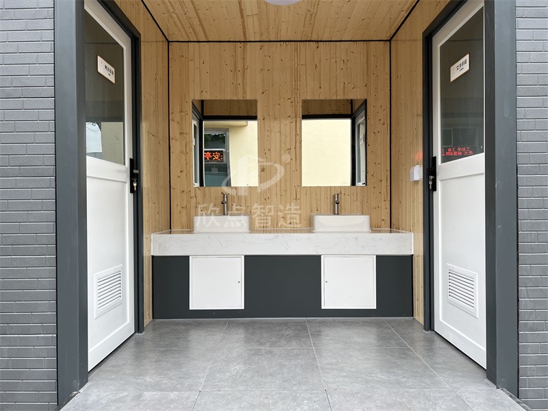 室內(nèi)包含馬桶、蹲便池、小便池、洗手池、儲水箱、排氣扇、電路照明燈等設備。戶外便攜移動廁所通常是由專業(yè)公司提供定制服務,還可以根據(jù)場地類似景區(qū)環(huán)境來設計款式。