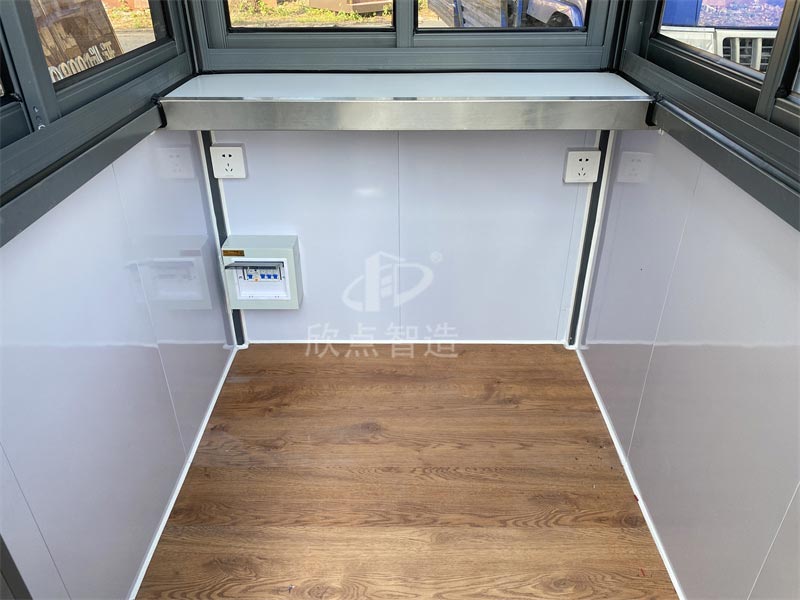 室內包含工作臺、插座、開關、LED燈、配電箱、電路等設備。真正的做到拎包可入住。崗亭通常是由專業公司提供定制服務,還可以根據場地類似景區環境來設計款式。